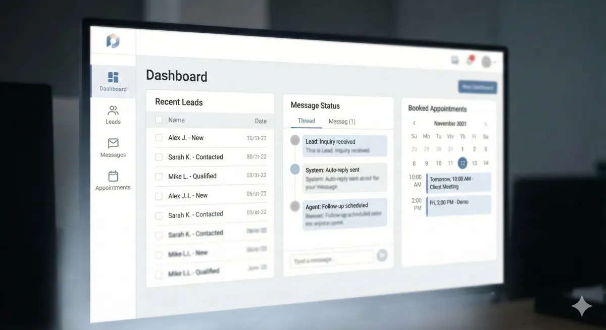 This is a quick walkthrough of what happens after a lead opts in: instant response, smart follow-up, and booking—plus how the pipeline updates automatically.